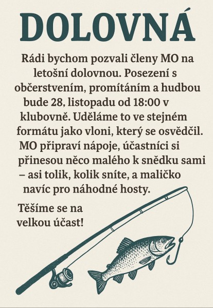 Rádi bychom pozvali členy MO na letošní dolovnou. Posezení s občerstvením, promítáním a hudbou bude 28. listopadu od 18:00 v klubovně. Uděláme to ve stejném formátu jako vloni, který se osvědčil. MO připraví nápoje, účastníci si něco malého k snědku přinesou samy. Asi tolik, kolik sníte a maličko navíc pro náhodné hosty.
